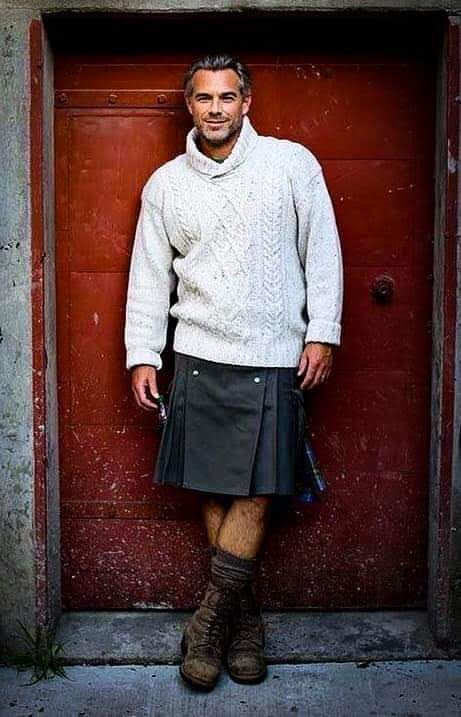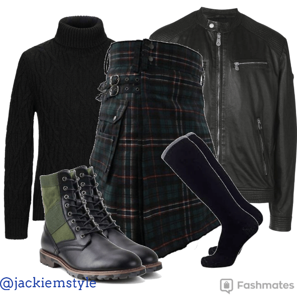 Conseil de stylisme: agencer votre kilt à un tricot(voir photo ci-dessous )ou une chemise. N’oubliez pas les bottes style combat ou moto.