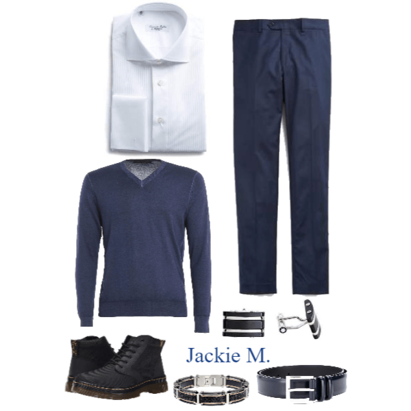 Layering season is the best time to wear a sweater with a shirt. Choosing a white shirt gives you an extra option. Don’t forget to tuck in your trousers for a more polished look.