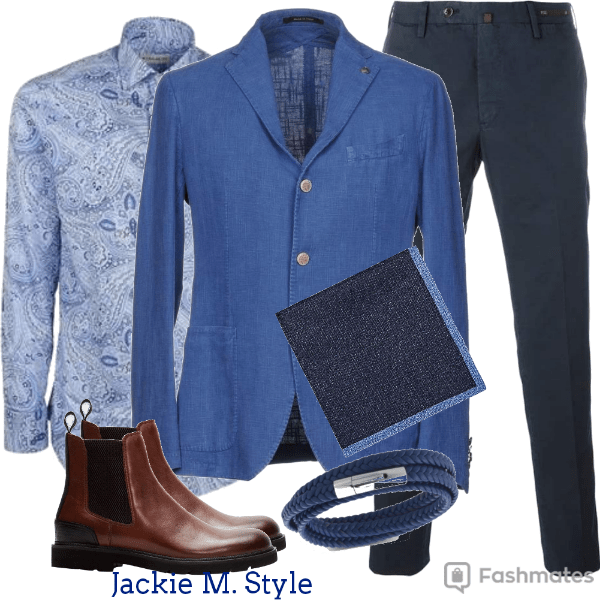 - Ajoutez une chemise d’un ton plus pâle que votre veston. Bonus: choisis une chemise à imprimé fleuri ou Paisley comme dans la photo.