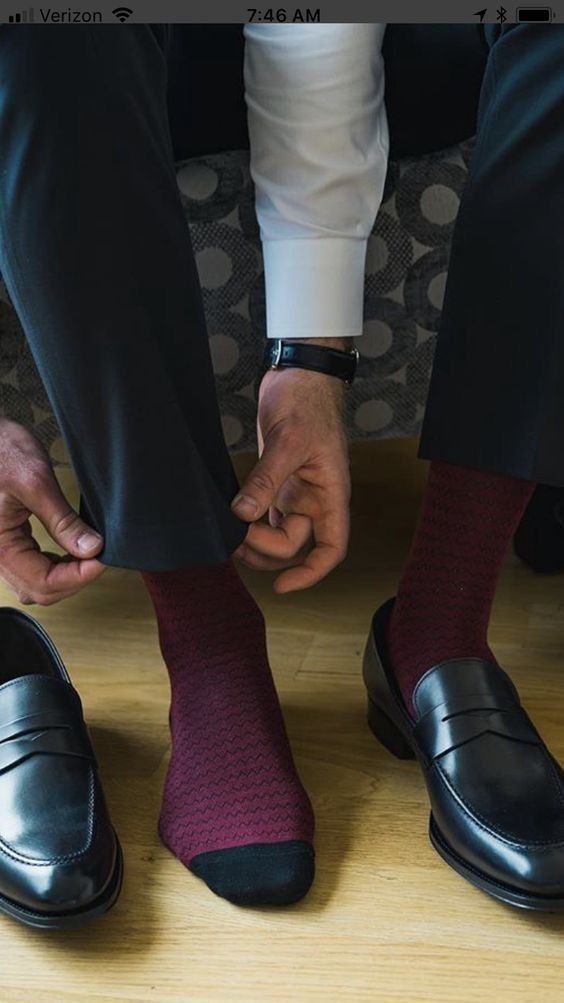 Autumn is the perfect time to bring a touch of color or pattern to your socks. Burgundy, forest green, or subtle geometric prints peek out just enough to show confidence without being loud.